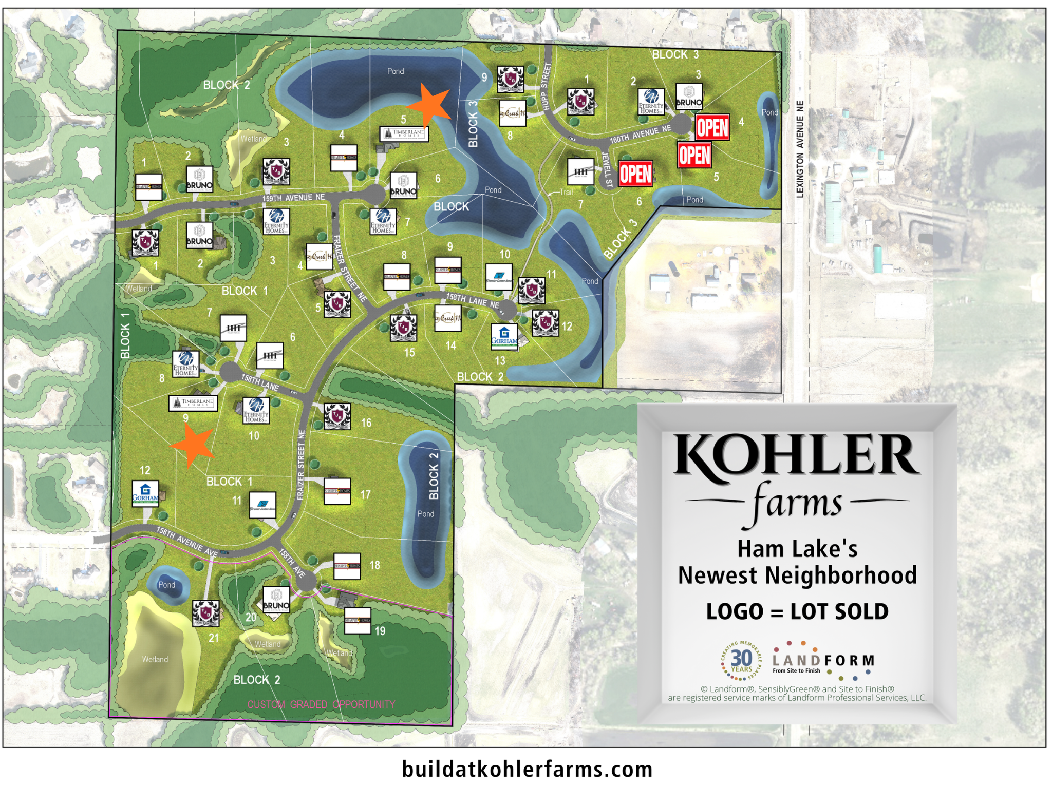 Coming soon to the rolling landscapes of eastern Ham Lake, Kohler Farms offers a rare chance to create your dream home in a setting that blends wide-open space with natural beauty. With 110 acres of 42 walkout and lookout lots, ranging from just over an acre to more than five, this new neighborhood is surrounded by pockets of forest, ponds and wetlands that capture Minnesota’s charm in every season.